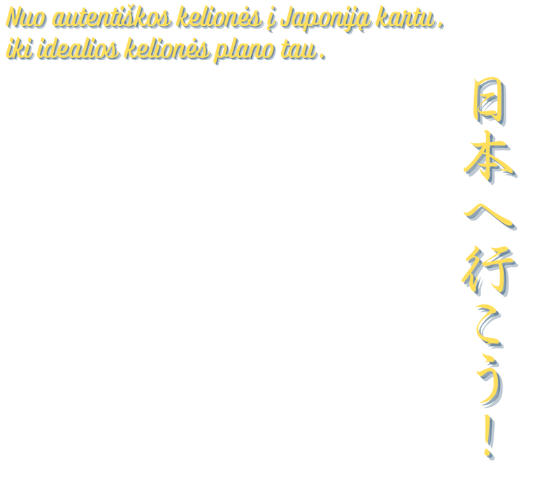 Jūs vykstate sutikti ir pabendrauti su tikrais japonais, patirti autentišką Japoniją, kurią matėte filmuose ir anime, ir grįžti namo su istorijomis – ne apgailestavimais, kad galėjote daugiau pamatyti ar patirti.